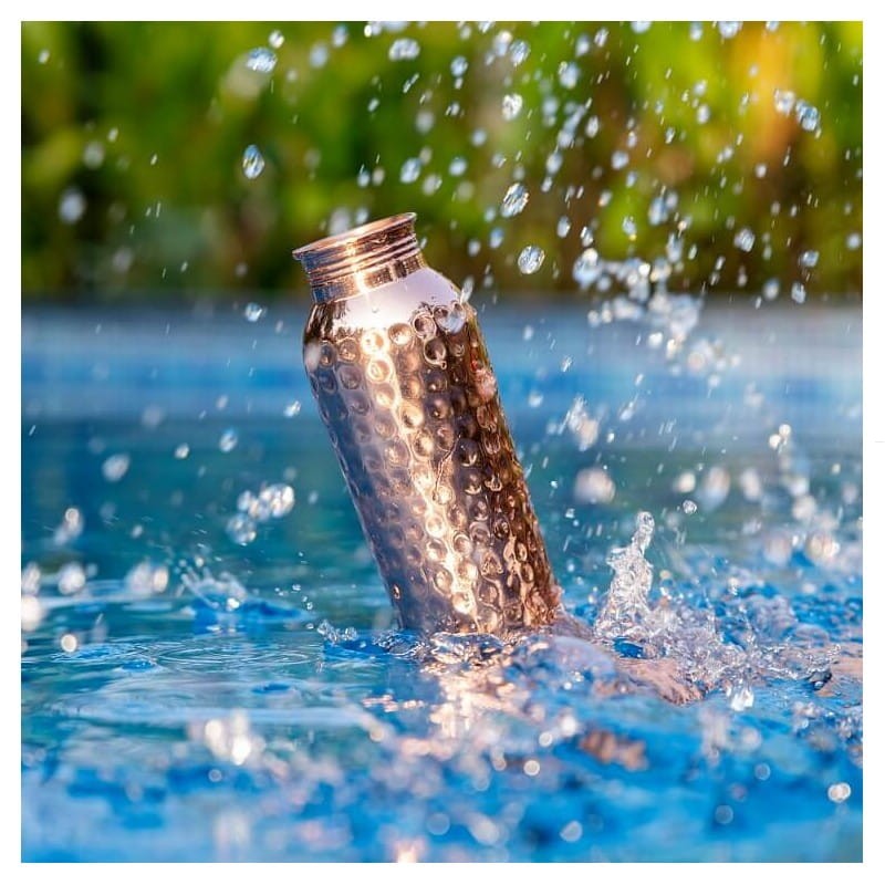 Ta butelka to o wiele więcej niż zwykła, stara plastikowa lub stalowa butelka! Przechowywanie wody w butelce przez noc przekształca ją we wzbogaconą w miedź Tamre Jal (miedziana woda), dzięki czemu jest ona naturalnie zasadowa. Wiadomo, że ta miedziana woda przywraca równowagę wszystkim trzem doszom, czyli energiom w ciele (vata, pitta i kapha).