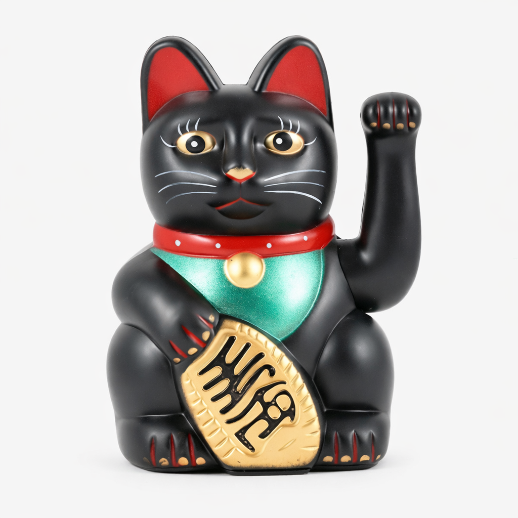 Czarny Kot Szczęścia Machający Łapką