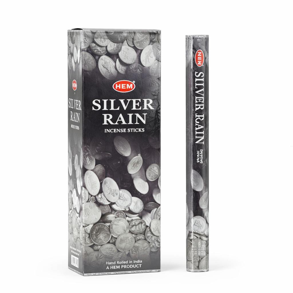 Kadzidełka HEM zapach Silver Rain - bardzo poszukiwany zapach. Subtelny i delikatny - jedyny taki zapach - polecany miłośnikom odprężającej i relaksujacej nuty. Odkryj ten wyjątkowy zapach. Opakowanie kadzidełek znanej i cenionej indyjskiej firmy Hem wytwarzającej naturalne kadzidełka tradycyjnymi metodami.