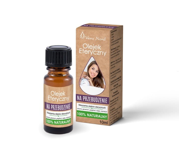 Olejek na przebudzenie eteryczny. Jest to sprawdzona mieszanka 100% naturalnych olejków eterycznych geranium, mięta pieprzowa, cytryna, rozmaryn i grapefruit, która we wspaniały sposób pobudza i likwiduje uczucie senności. Olejki zawarte w tej mieszance to całkowicie naturalne wyciągi z roślin, które uzyskuje się metodą destylacji lub wyciskania. Olejek jest w 100% czysty, naturalny i nie zawiera żadnych dodatków które wzmacniają zapach - polecamy sprawdza się znakomicie.