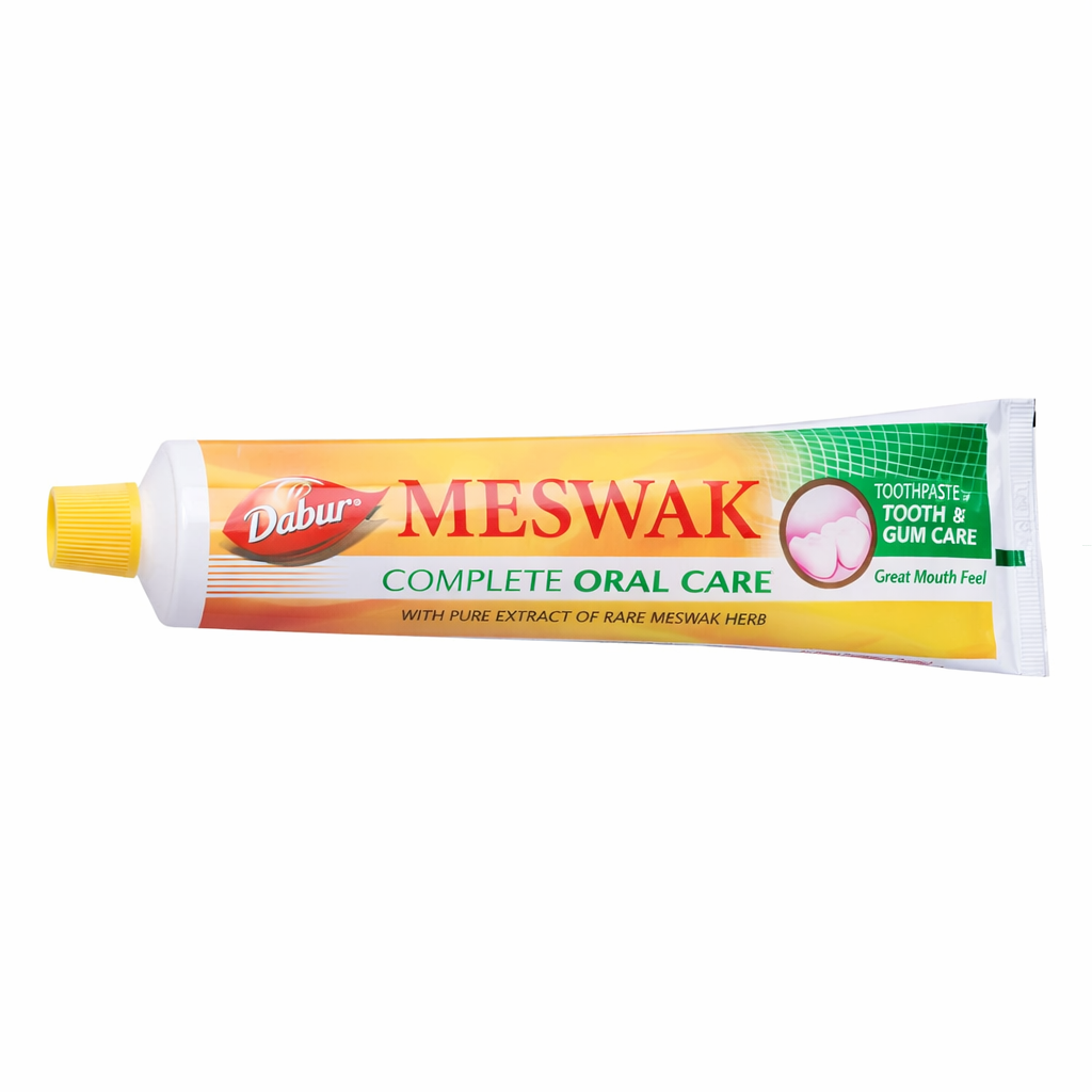 Pasta do zębów Dabur Meswak oparta na naturalnych składnikach w tym ekstrakt z miswak - drewno arakowe. Zapewnia to ochronę zębów i dziąseł. Produkt znanej i lubianej na całym świecie firmy Dabur oparty na naturalnych, ziołowych składnikach - 100% wegetariańska pasta. Skutecznie czyści i chroni zęby oraz dziąsła. Nie zawiera fluoru oraz cukru.