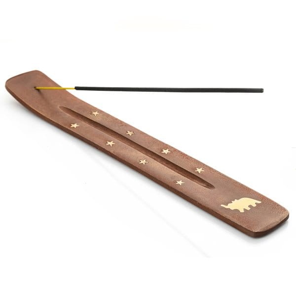 Podstawka do palenia kadzidełek narta. Wykonana jest z drewna palisandru indyjskiego, malowana lakierowaną bejcą, wstawka z mosiądzu słonik. Idealne i najlepsze rozwiązanie do palenia kadzideł.
